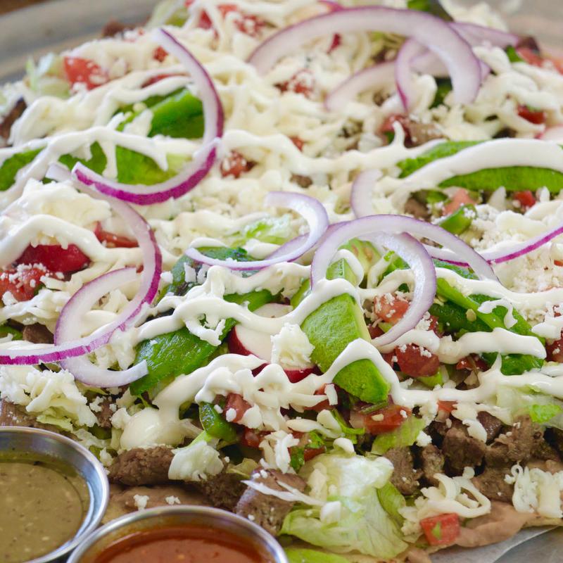 Served with bell grilled pepper and onions | Super Nachos: Spice up your nachos with a set up of guacamole, pico de gallo, lettuce, and sour cream +$2.99