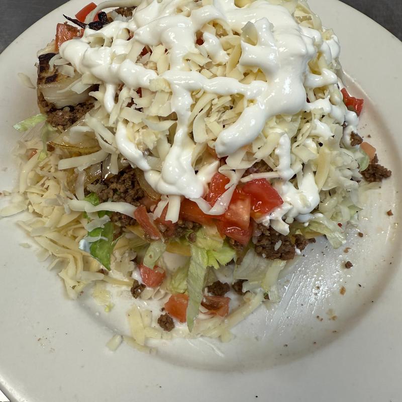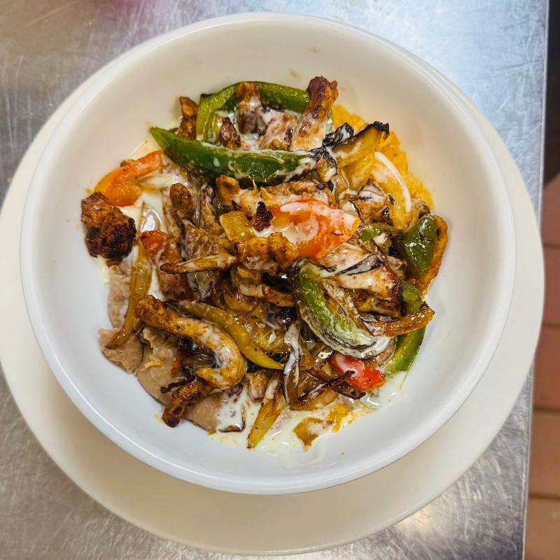 With choice of protein: Chicken $4.99 | Chorizo $4.99 | Pastor $4.99 | Ground Beef $4.99 | Steak $5.99 | Veggies $4.99 | Shrimp $5.99