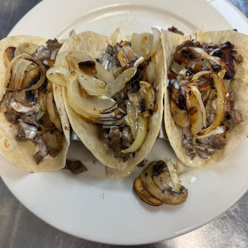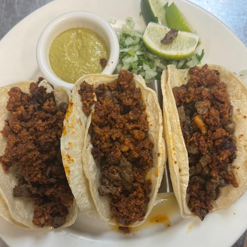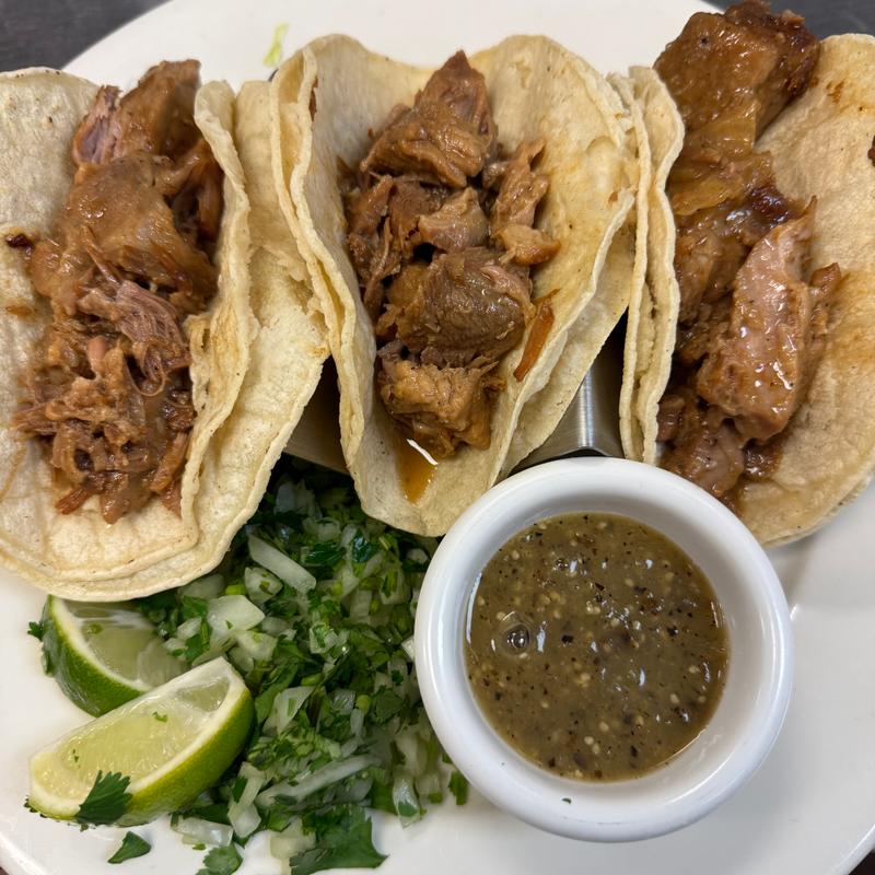 Corn tortilla stuffed with choice of protein and choice of green tomatillo, red chili, or tomato sauce.