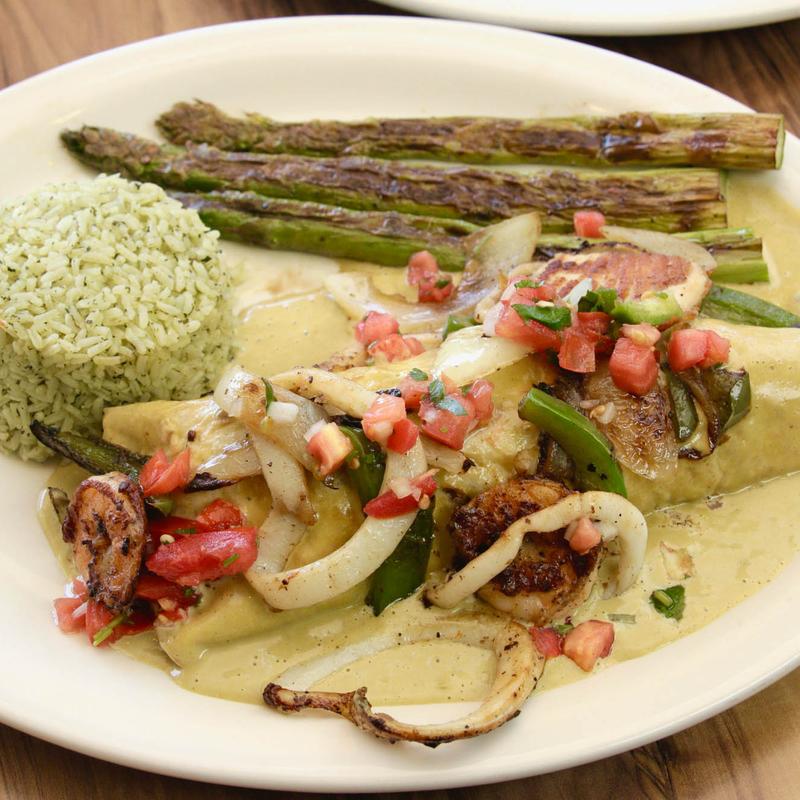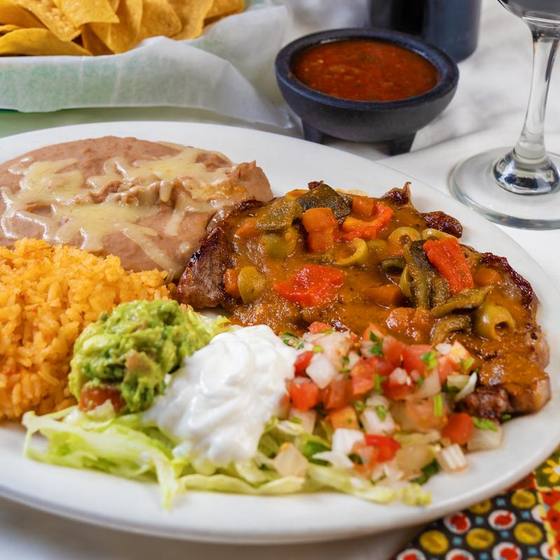 All served with rice, beans, flour tortillas, lettuce, pico de gallo, sour cream, and guacamole. Grilled bell peppers and onions.