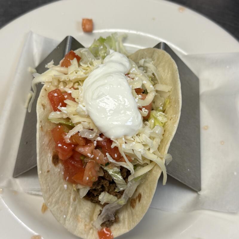 All tacos come with a choice of flour, corn or hard shell tortillas, served with rice and beans.