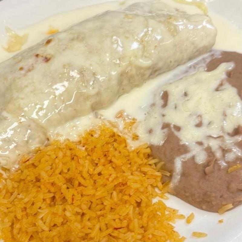 All burritos served with rice and choice of refried pinto beans or black beans, garnished with grilled onions.